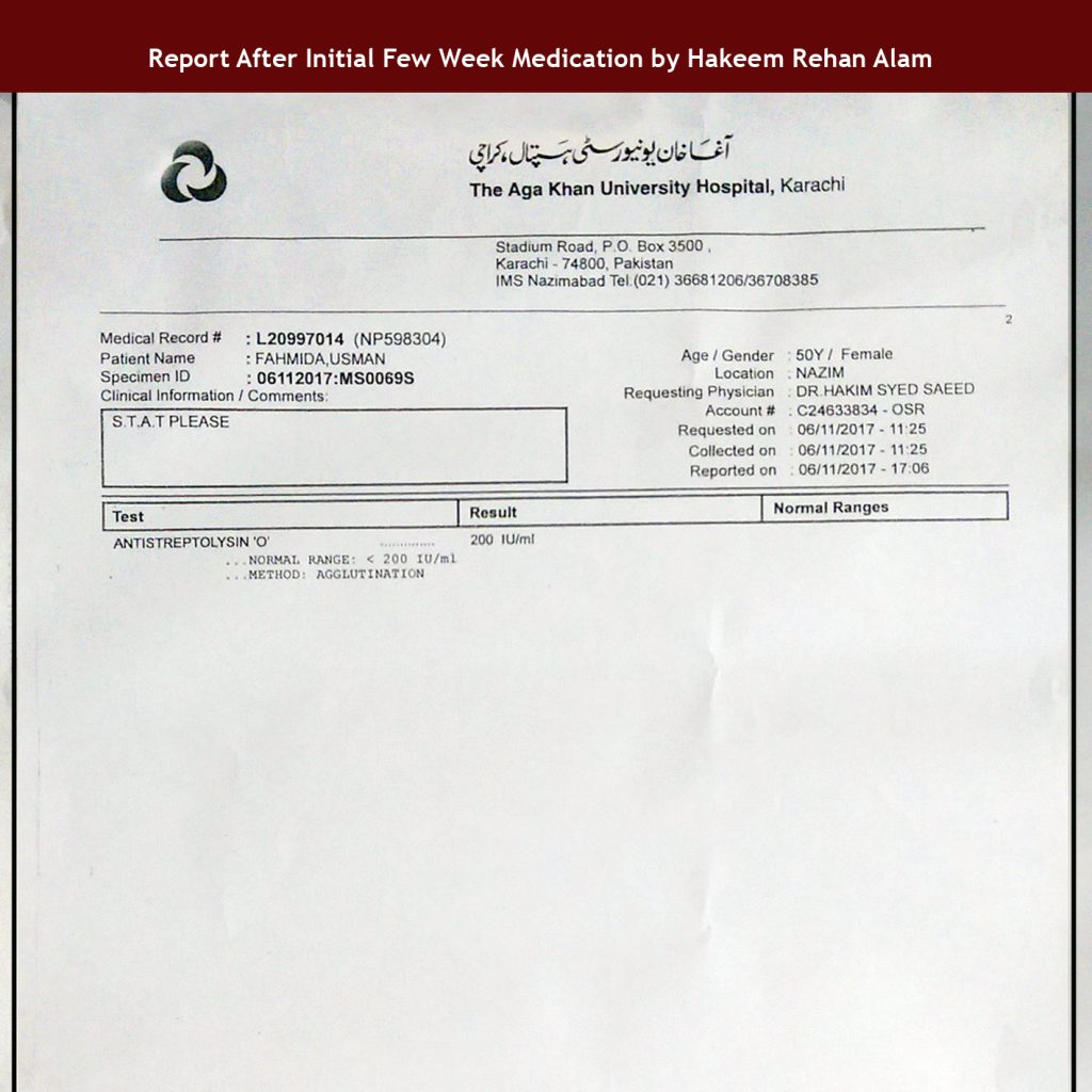 After the treatment of 16 weeks, by the grace of Allah and By the help of Hakeem Rehan Alam finally I have leave taking medicines for weeks and Alhamdulillah my current result is 3.5 without any medication,