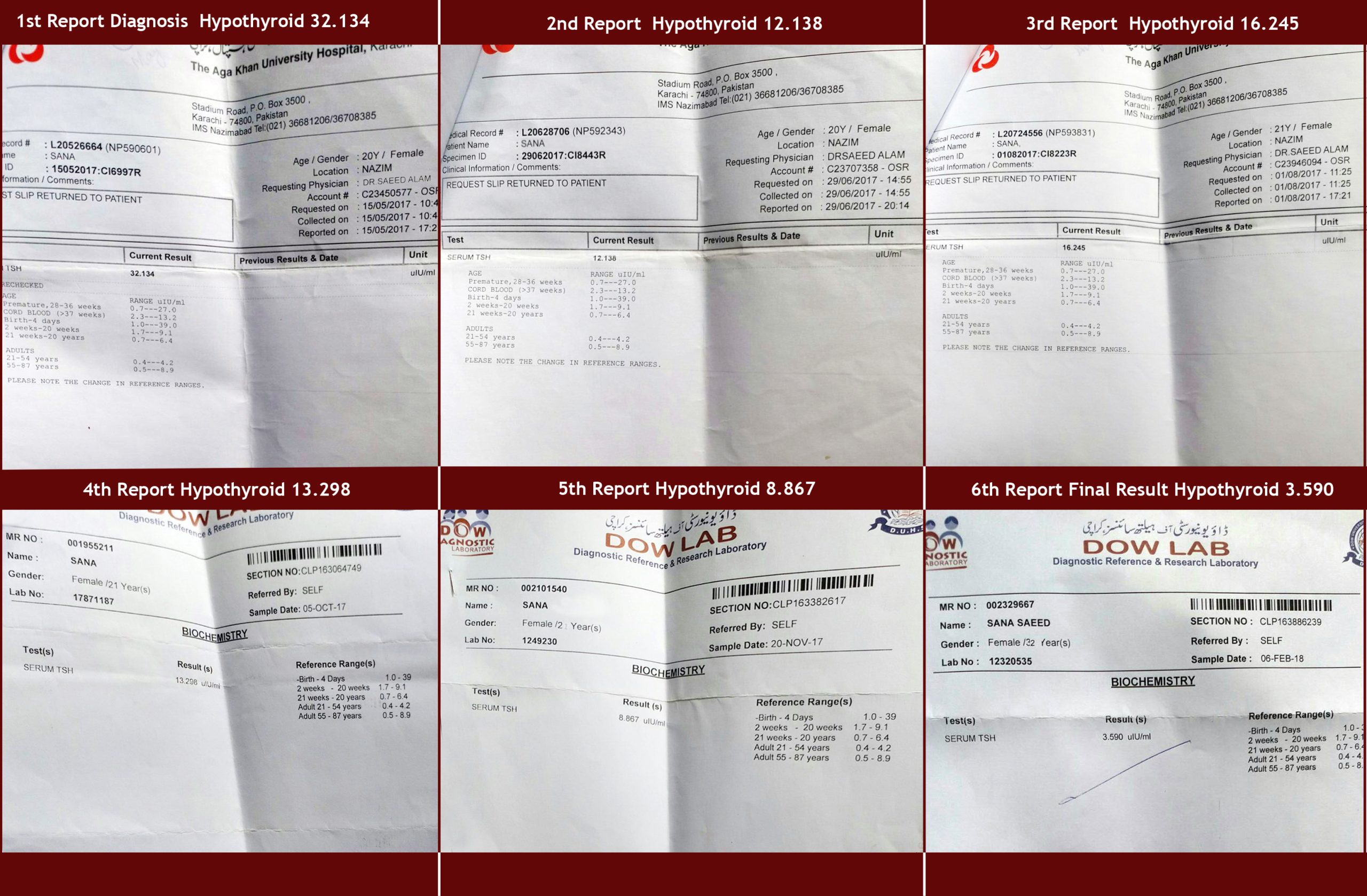 First of all thanks to Almighty Allah who is the merciful. This is sana age 21 i was the patient of thyroid ,While back to the day 12/04/2017 it was discovered that I am patient of hypothyroid. my condition was like gaining weight , mood swings, depression, stress attacks crying for no reason in other words life was stuck I went to a famous female doctor in a renown hospital in Karachi, She saw my reports and recommend me the treatment of hypothyroid which was to take the medicine for the life time as my thyroid result was 88.232 which was 100x more than the normal range (i.e 0.4 – 4.2) for a female, hearing the words “for the lifetime medication treatment”, I was shocked because those medicine was to only maintain the thyroid but there was also chances to create other problems/side effects too. My doctor end up by saying that the ball is in your court and this is the only treatment we have.