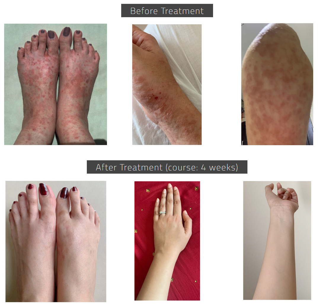 As you can see from the pictures, I was suffering from a severe skin disease. Initially, they started as small spots on my body so I went to the doctors in Riyadh to get it treated. They did numerous tests and yet were not sure as to what caused it. Despite that, they gave me some medicines and steroids to suppress it. However, instead of supressing them, these medicines made it worse and caused what you can see in these pictures. Upon enquiring as to why this is happening, they said it will aggravate at first but then will go away. Unfortunately, that was not the case as my conditioned worsened within the 1.5 months of their treatment.